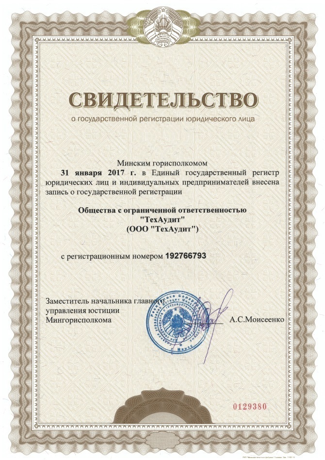 | Адрес | ООО "ТехАудит", г. Минск, ул. Толбухина, 2, офис 230, 220012 |